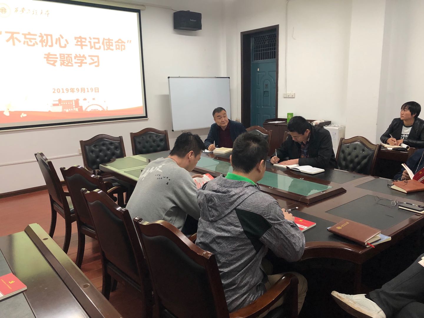 2019年9月19日,beat365手机版官方网站党总支在金花校区学院会议室开展了“不忘初心、牢记使命”专题学习活动,活动由学院党总支书记王宇主持,学院全体教职工参加了学习。