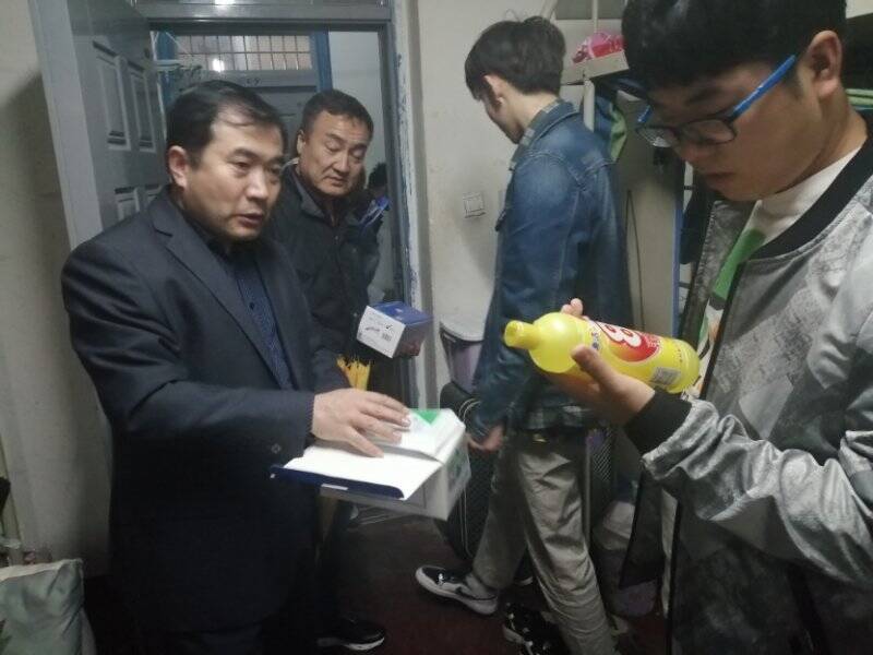 检查中,学院领导们与学生们细致交流,询问了解他们生活、学习状况,以及近期的身体状况,叮嘱他们要经常开窗通风,晾晒被褥,防止春季传染病的发生。