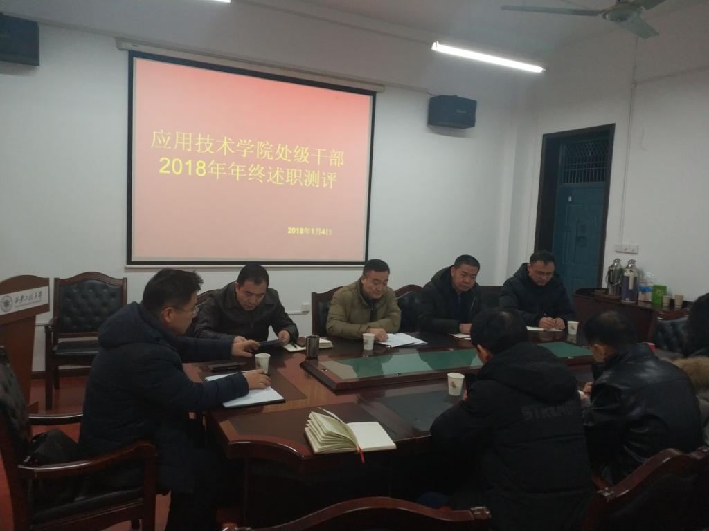 2019年1月4日,beat365手机版官方网站在金花校区主楼西配楼学院会议室召开处级干部2018年度述职大会。校纪委书记井浩、组织部张旭、学院党政干部及全体教职工参加会议。