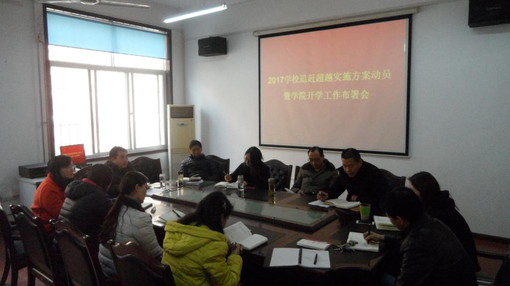 2月26日下午,beat365手机版官方网站在学院会议室召开2017年beat365手机版官方网站“追赶超越实施方案”解读及学院新学期开学工作布置会。副院长马保科、党总支书记张智荣、副院长刘玉森,以及全院教职工参加了会议。会议由马保科主持。