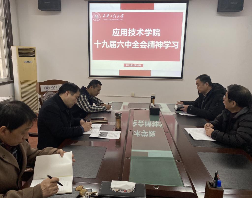 2021年12月16日下午,beat365手机版官方网站直属党支部在金花校区学院会议室开展党的十九届六中全会精神专题学习,学院中心组成员参加,会议由直属支部书记王宇主持。